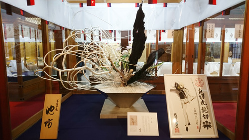 いつも髭切が展示してあるケースには、池坊が手がけた髭切をイメージしたお花が飾られていました。