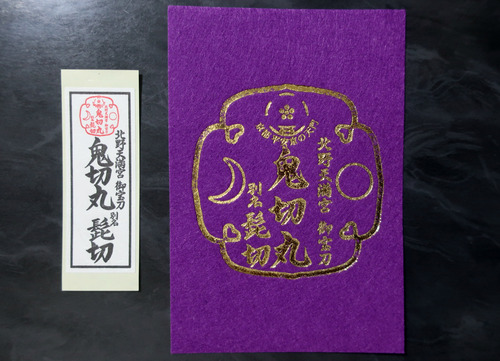 期間限定の御朱印。これには鬼切丸別名髭切の印のついたフェルトと千社札が付いてきます。
